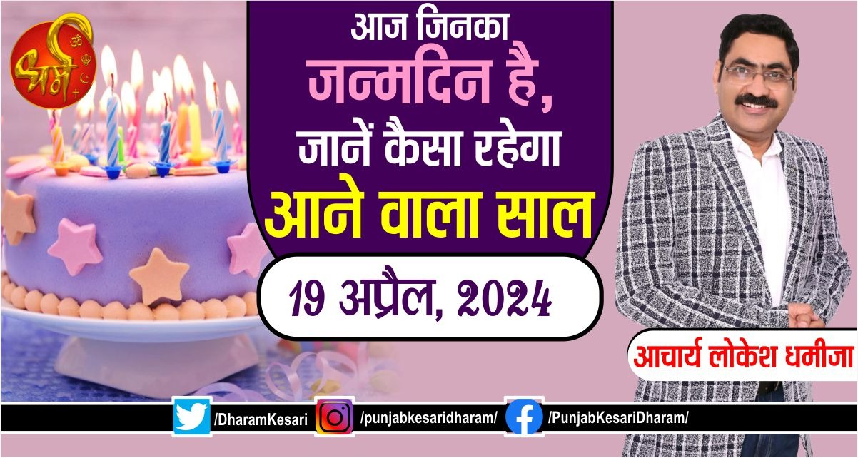 Today's Birthday Prediction: आज आपके जन्मदिन की आपको बहुत-बहुत शुभकामनाएं। 19 अप्रैल में जन्मे व्यक्तियों का मूलांक 1 होता है, जिनके स्वामी सूर्य देव हैं। मूलांक 1 वाले जातक बहुत ही स्वाभिमानी और स्वतंत्र विचारों वाले होते हैं। ये लोग किसी के अधीन होकर काम करना पसंद नहीं करते। मूलांक 1 वाले जातकों को या तो स्वयं का कोई काम करते हुए देखा गया है या नौकरी करने वाले लोग भी एक अच्छे ओहदे पर कार्य करते हैं। मूलांक 1 वाले जातकों में एक अच्छे नेता के गुण होते हैं। इन लोगों की नेतृत्व शक्ति काफी अच्छी होती है। मूलांक 1 वाले जातक दूसरों के अंदर प्रेरणा का स्त्रोत बन कर उनसे काम करवाने का हुनर जानते हैं। इन लोगों में एक उत्तम प्रबंधक के गुण होते हैं। ये लोग किसी भी स्थान पर कार्यरत होते हैं, इन्हें स्वतः ही अधिकार और सत्ता प्राप्त हो जाती है। ये लोग हमेशा किसी भी काम का प्रबंधन अपने अधीन लेने के लिए तैयार रहते हैं। या यूं कहें इन्हें खुद ही इनके गुणों के कारण प्रबंधन और नेतृत्व के कार्य सौंप दिए जाते हैं। परंतु मूलांक 1 वाले जातकों में बहुत बार अपने अधिकारों के कारण अभिमान की भावना को उत्पन्न होते हुए देखा गया है, जो कि इनके लिए नुकसानदायक साबित होती है। मूलांक 1 वाले जातकों को अभिमान और स्वाभिमान के बीच के अंतर को समझना चाहिए।