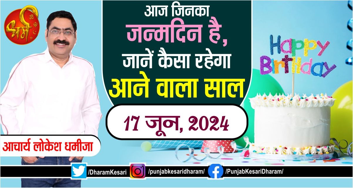 Today's Birthday Prediction: आज आपके जन्मदिन की आपको बहुत-बहुत शुभकामनाएं। 17 जून में जन्में व्यक्तियों का मूलांक 8 होता है, जिनके स्वामी शनि देव हैं। मूलांक 8 वाले जातक चुपचाप रहने वाले और अंतर्मुखी होते हैं। इन लोगों के मित्र कम संख्या में होते हैं। मूलांक 8 वाले जातकों का स्वभाव थोड़ा रूखा और गंभीर होता है। इनके जीवन से नीरसता छलकती है। मूलांक 8 वाले जातकों को परिवर्तन कम पसंद आता है। ये लोग एक ही स्थान पर टिक कर काम करना पसंद करते हैं। ये लोग हर काम को धीरे-धीरे करना पसंद करते हैं। इन लोगों में आलस भी देखा गया है। मूलांक 8 वाले जातकों का जीवन संघर्षमय रहता है। इन्हें अपने जीवन लक्ष्य को प्राप्त करने के लिए बहुत से उतार-चढ़ाव का सामना करना पड़ता है। इन्हें देर से ही सही अंत में सफलता हासिल होती है। मूलांक 8 वाले जातकों का परिवार में अपने पिता के साथ वैचारिक मतभेद रहता है। इन लोगों की शिक्षा प्रायः अच्छी रहती है। हालांकि कई बार शिक्षा में रुकावटों का सामना करना पड़ता है। मूलांक 8 वाले जातकों को लोहा, मशीनरी, उद्योग, स्टील, इस्पात, कोयला, पेट्रोलियम इत्यादि क्षेत्रों में सफल कार्य करते हुए देखा गया है।