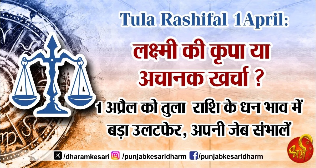 Tula Rashifal 1 April : लक्ष्मी की कृपा या अचानक खर्चा ? 1 अप्रैल को तुला राशि के धन भाव में बड़ा उलटफेर, अपनी जेब संभालें