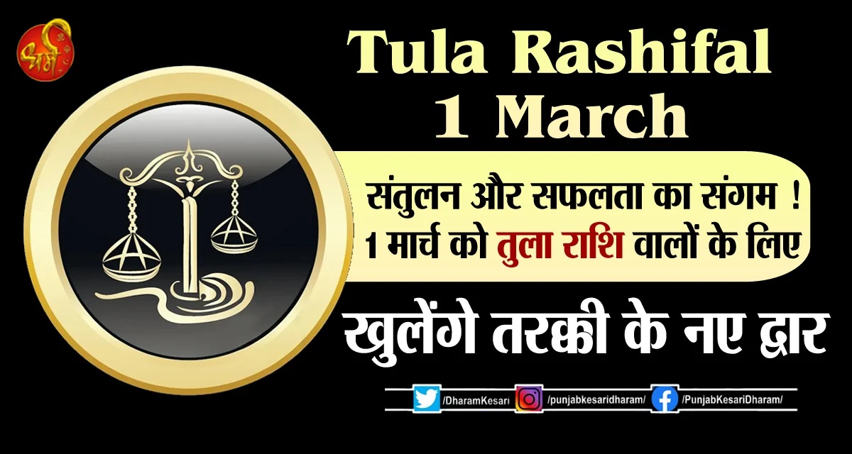 Tula Rashifal 1 March : संतुलन और सफलता का संगम ! 1 मार्च को तुला राशि वालों के लिए खुलेंगे तरक्की के नए द्वार