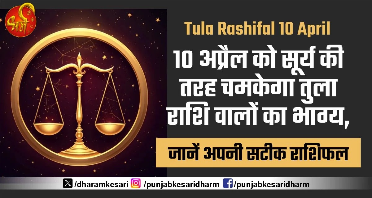 Tula Rashifal 10 April : 10 अप्रैल 2026 का दिन तुला राशि के जातकों के लिए उम्मीदों की एक नई किरण लेकर आया है। आपकी राशि के स्वामी शुक्र देव और सूर्य की शुभ दृष्टि के कारण आज आपका व्यक्तित्व और भाग्य, दोनों ही सूर्य की भांति चमकने वाले हैं। तुला राशि वाले अपनी संतुलन बनाने की कला के लिए जाने जाते हैं, और आज यही खूबी आपको सफलता के शिखर पर ले जाएगी। आइए जानते हैं करियर, धन, प्रेम और स्वास्थ्य के लिहाज से आपका दिन कैसा बीतेगा।