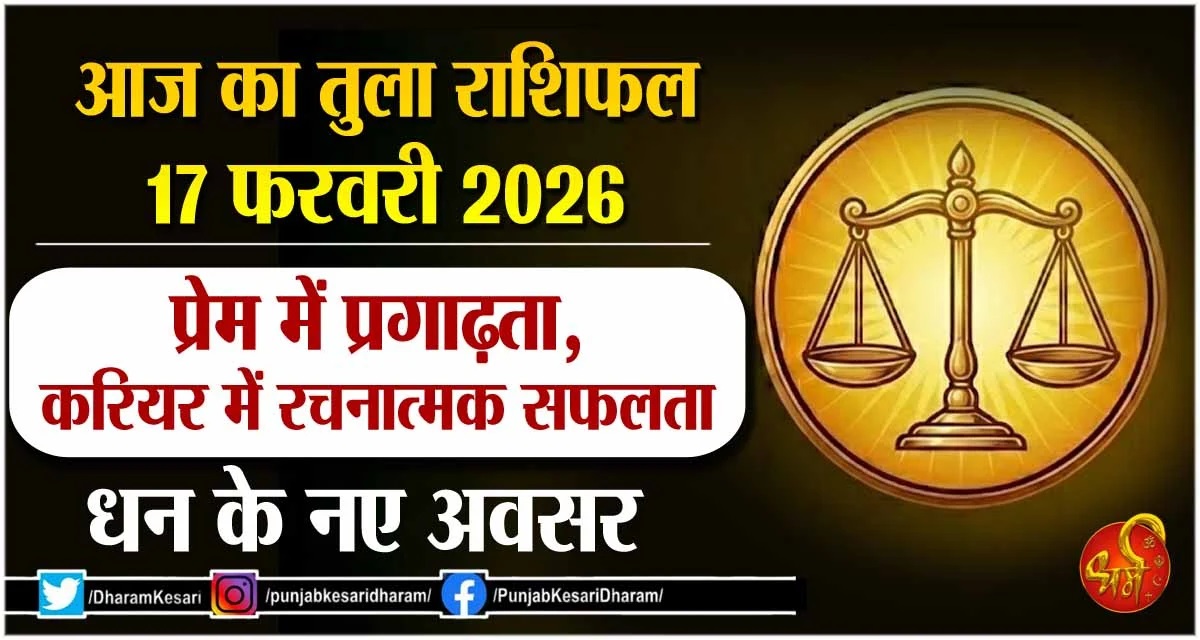 17 फरवरी 2026 का दिन तुला राशि के लिए सकारात्मक ऊर्जा और संतुलन का संदेश लेकर आया है। प्रेम, करियर और आर्थिक मामलों में प्रगति के संकेत हैं। सही योजना, धैर्य और संतुलन बनाए रखकर आप आज के दिन को सफल बना सकते हैं।