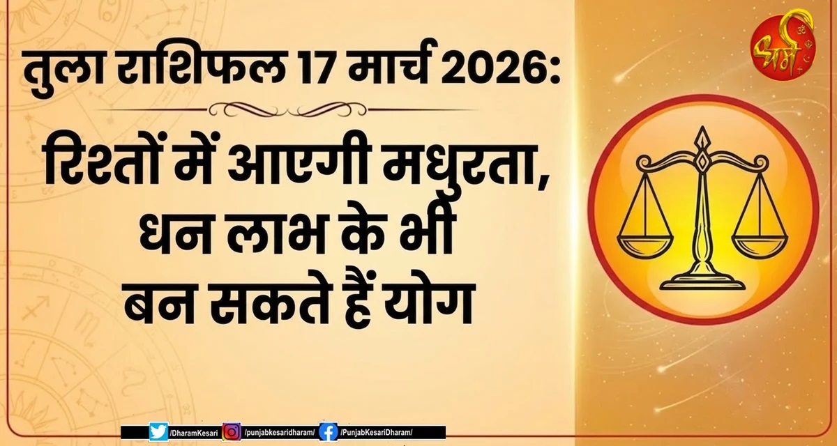 तुला राशिफल 17 मार्च 2026 : रिश्तों में आएगी मधुरता, धन लाभ के भी बन सकते हैं योग