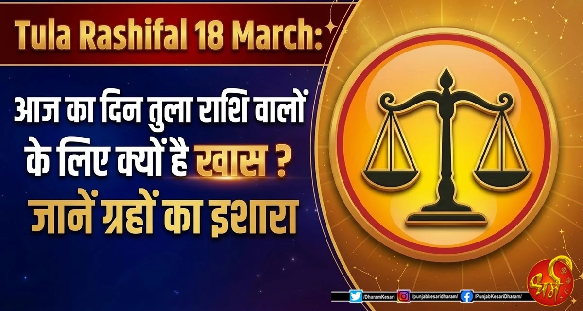 Tula Rashifal 18 March : 18 मार्च, 2026 का दिन तुला राशि के जातकों के लिए एक नई सुबह और सकारात्मक ऊर्जा का संचार लेकर आ रहा है। शुक्र के स्वामित्व वाली यह राशि जीवन में संतुलन की प्रतीक है। ग्रहों का इशारा है कि आज आपके जीवन के तुला यानी तराजू के दोनों पलड़े बराबर रहने वाले हैं न काम का अधिक बोझ और न ही मानसिक अशांति। आज का दिन आपके लिए क्यों खास है और ग्रहों की स्थिति आपके भाग्य को किस दिशा में मोड़ रही है, आइए इसका गहराई से विश्लेषण करते हैं।