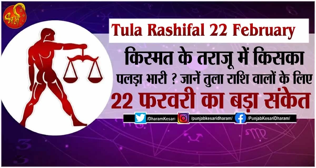 Tula Rashifal 22 February : किस्मत के तराजू में किसका पलड़ा भारी ? जानें तुला राशि वालों के लिए 22 फरवरी का बड़ा संकेत