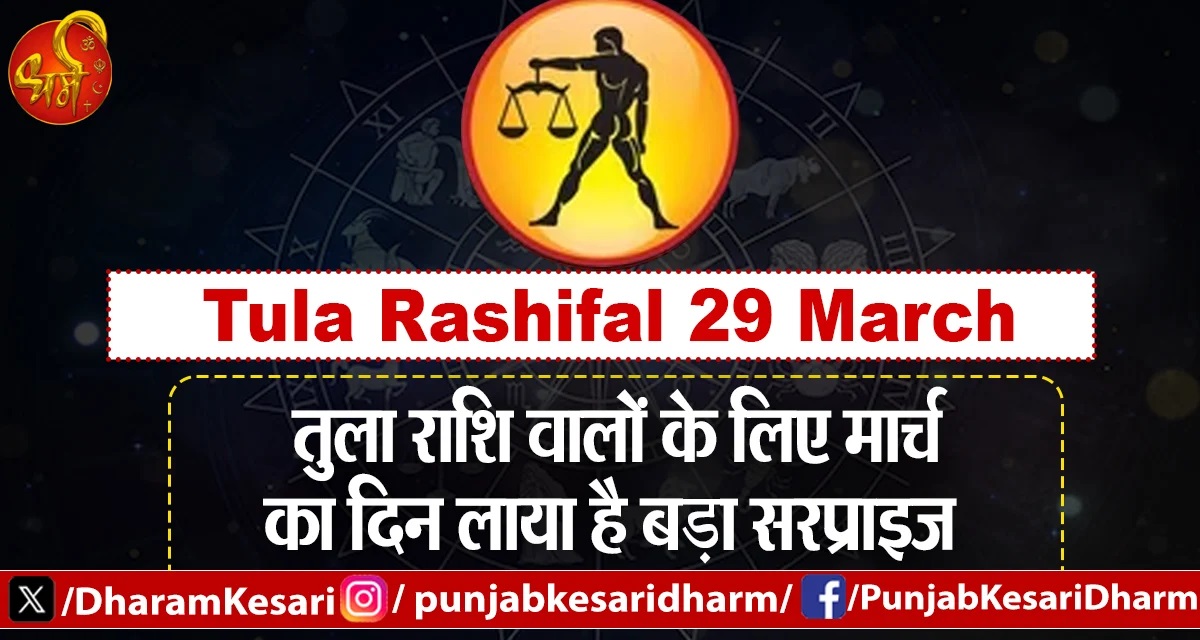 Tula Rashifal 29 March : तुला राशि के जातकों के लिए 29 मार्च का दिन किसी सुनहरे अवसर से कम नहीं होने वाला है। इस दिन चंद्रमा की स्थिति और शुक्र का प्रभाव आपके व्यक्तित्व में निखार लाएगा। यदि आप पिछले कुछ समय से किसी उलझन में थे, तो इस दिन आपको वह बड़ा सरप्राइज मिलने वाला है जिसकी आपने कल्पना भी नहीं की थी।
