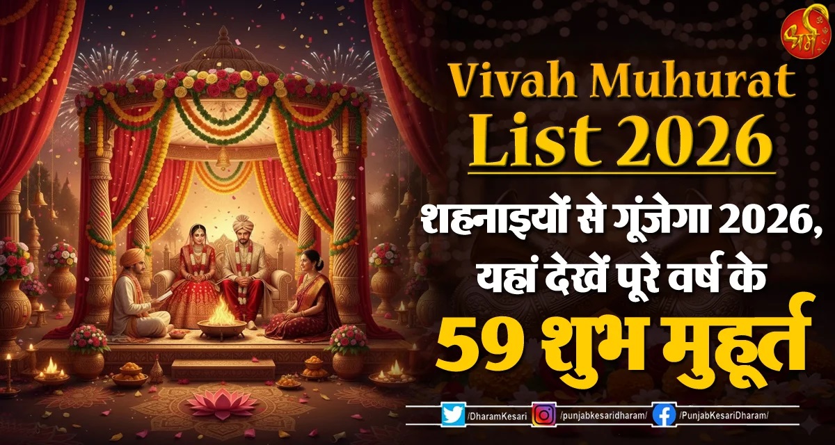 Vivah Muhurat List 2026: साल 2026 विवाह और मांगलिक कार्यों के लिए अत्यंत अनुकूल रहने वाला है। ज्योतिषीय गणनाओं के अनुसार, इस पूरे वर्ष में विवाह के लिए कुल 59 शुभ मुहूर्त उपलब्ध होंगे। यह वर्ष उन जोड़ों के लिए खुशियों की सौगात लेकर आया है, जो एक शुभ घड़ी में वैवाहिक बंधन में बंधना चाहते हैं। शुभ विवाह मुहूर्त की गणना पंचांग, तिथि, वार, नक्षत्र, योग, करण और शुक्र-बृहस्पति के अस्त-उदय पर आधारित होती है। 2026 में, चातुर्मास, खरमास और शुक्र एवं बृहस्पति के अस्त होने की अवधि को छोड़कर, बाकी सभी महीनों में विवाह के लिए शुभ तिथियां उपलब्ध हैं।आइए जानते हैं वर्ष 2026 के महीने शुभ विवाह मुहूर्तों की सूची देखें: