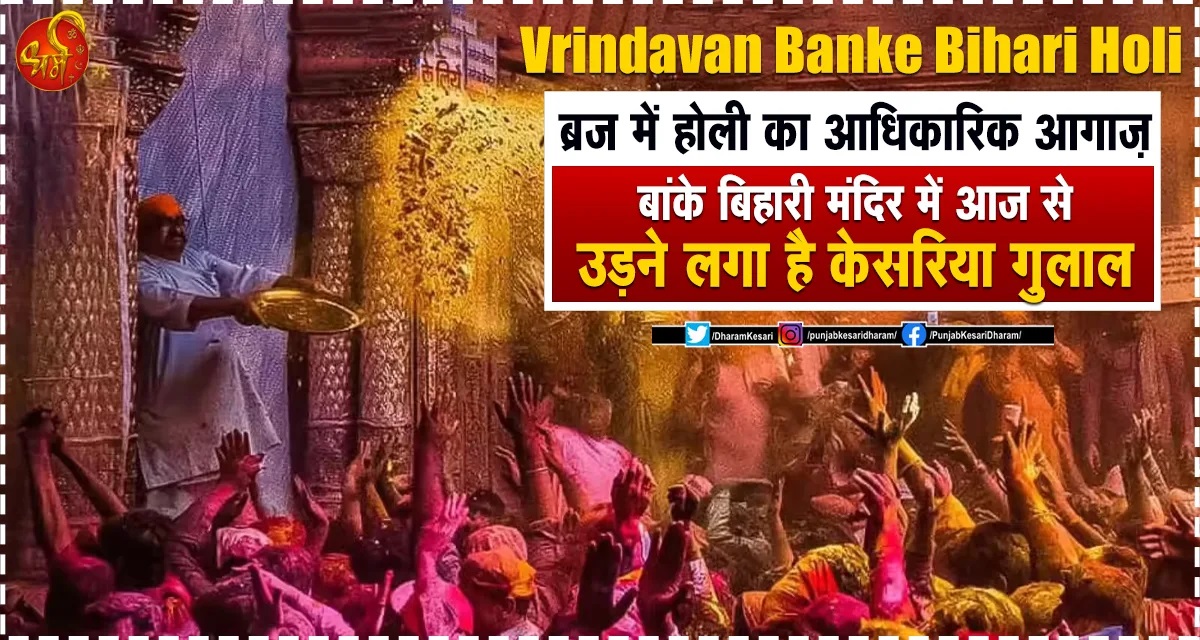Vrindavan Banke Bihari Holi : ब्रज में होली का आधिकारिक आगाज़, बांके बिहारी मंदिर में आज से उड़ने लगा है केसरिया गुलाल