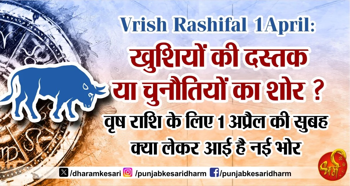 Vrish Rashifal 1 April : खुशियों की दस्तक या चुनौतियों का शोर ? वृष राशि के लिए 1 अप्रैल की सुबह क्या लेकर आई है नई भोर
