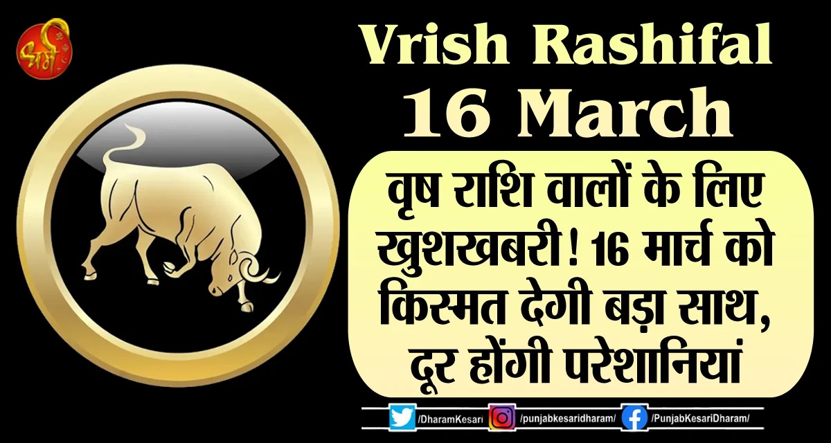 Vrish Rashifal 16 March : वृष राशि वालों के लिए खुशखबरी! 16 मार्च को किस्मत देगी बड़ा साथ, दूर होंगी परेशानियां