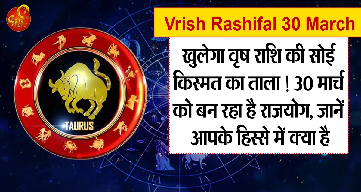 Vrish Rashifal 30 March : खुलेगा वृष राशि की सोई किस्मत का ताला ! 30 मार्च को बन रहा है राजयोग, जानें आपके हिस्से में क्या है