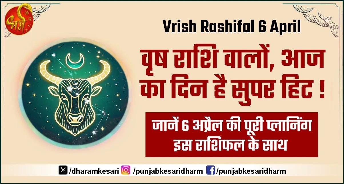 Vrish Rashifal 6 April : वृष राशि वालों, आज का दिन है'सुपर हिट ! जानें 6 अप्रैल की पूरी प्लानिंग इस राशिफल के साथ