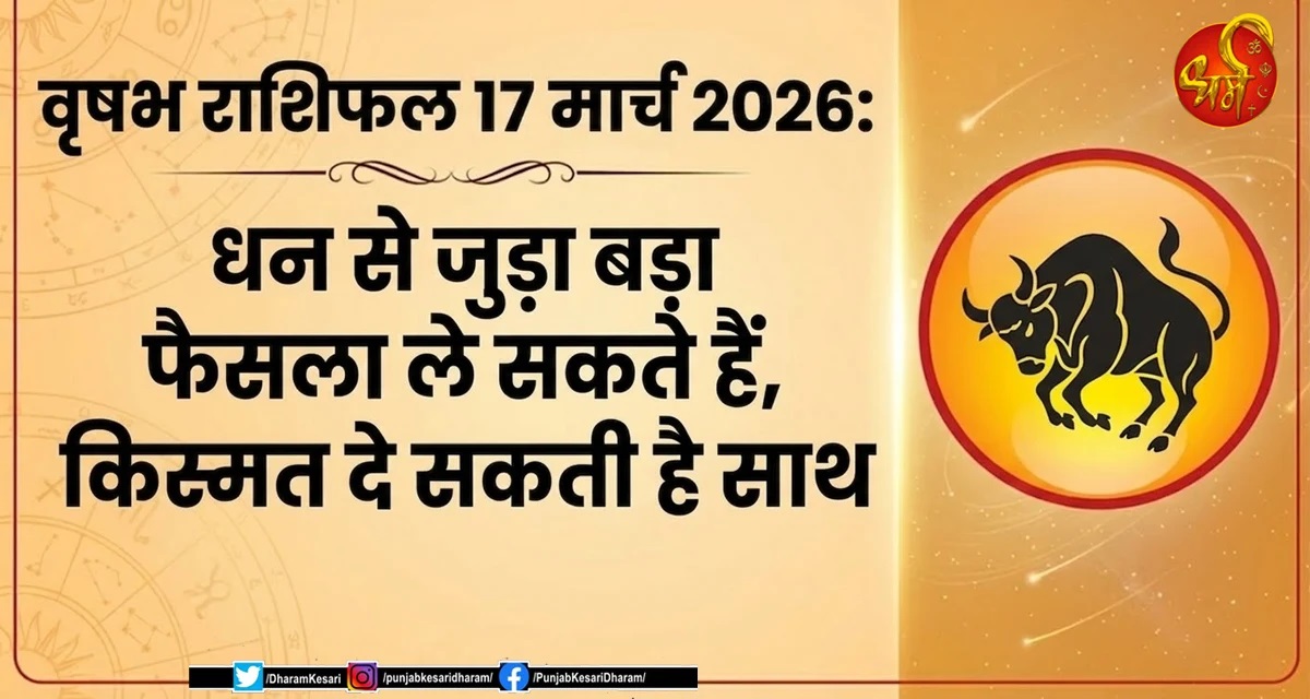 कुल मिलाकर 17 मार्च 2026 का दिन वृषभ राशि के जातकों के लिए प्रगति और अवसरों से भरा हो सकता है। आर्थिक मामलों में महत्वपूर्ण निर्णय सामने आ सकते हैं और किस्मत भी आपका साथ दे सकती है। करियर में सम्मान बढ़ने की संभावना है, परिवार का सहयोग मिलेगा और रिश्तों में भी मधुरता बनी रहेगी। धैर्य और समझदारी के साथ आगे बढ़ेंगे तो यह दिन आपके लिए कई नई संभावनाओं के द्वार खोल सकता है।