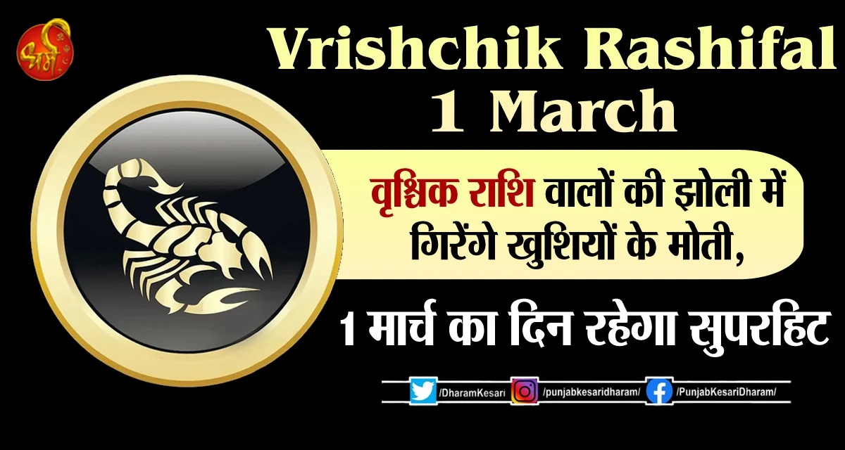 Vrishchik Rashifal 1 March : वृश्चिक राशि वालों की झोली में गिरेंगे खुशियों के मोती, 1 मार्च का दिन रहेगा सुपरहिट