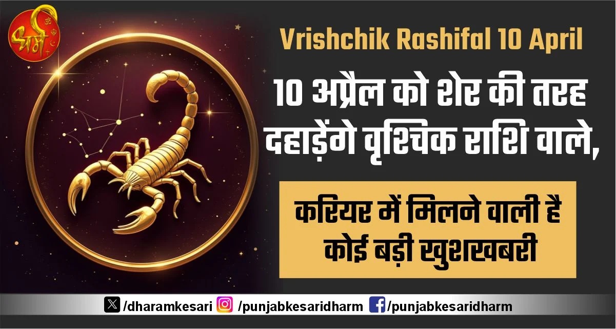 Vrishchik Rashifal 10 April : 10 अप्रैल 2026 का दिन वृश्चिक राशि के जातकों के लिए शक्ति, साहस और सफलता का संगम लेकर आया है। आपकी राशि के स्वामी मंगल देव की विशेष कृपा के कारण आज आपके भीतर एक अद्भुत ऊर्जा का संचार होगा। सितारे संकेत दे रहे हैं कि आज आप न केवल चुनौतियों का सामना करेंगे, बल्कि उन पर 'शेर' की तरह हावी भी रहेंगे। विशेष रूप से करियर के मोर्चे पर आज का दिन आपके जीवन का टर्निंग पॉइंट साबित हो सकता है।