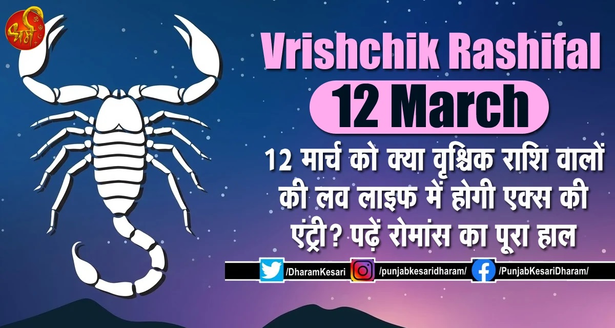 Vrishchik Rashifal 12 March : 12 मार्च को क्या वृश्चिक राशि वालों की लव लाइफ में होगी एक्स की एंट्री ? पढ़ें रोमांस का पूरा हाल