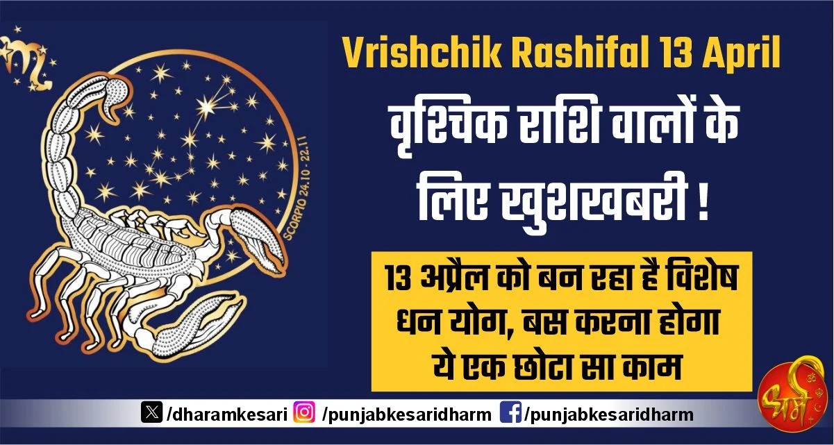 Vrishchik Rashifal 13 April : वृश्चिक राशि वालों के लिए खुशखबरी ! 13 अप्रैल को बन रहा है विशेष धन योग, बस करना होगा ये एक छोटा सा काम