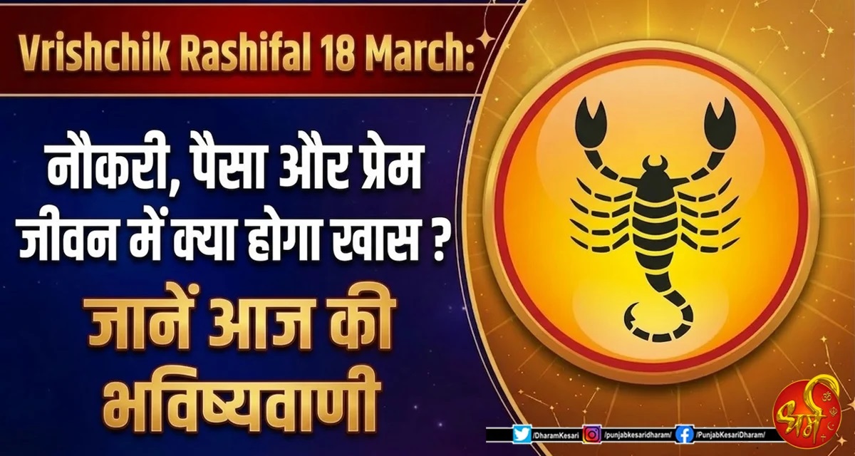 Vrishchik Rashifal 18 March : नौकरी, पैसा और प्रेम जीवन में क्या होगा खास ? जानें आज की भविष्यवाणी
