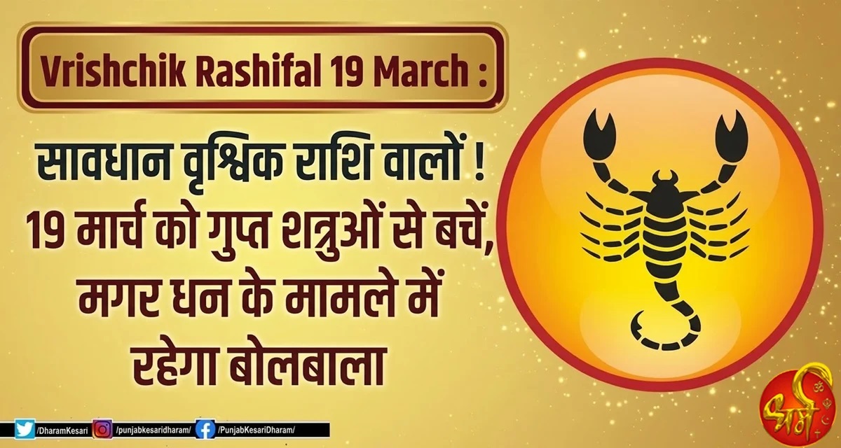 Vrishchik Rashifal 19 March : सावधान वृश्चिक राशि वालों ! 19 मार्च को गुप्त शत्रुओं से बचें, मगर धन के मामले में रहेगा बोलबाला