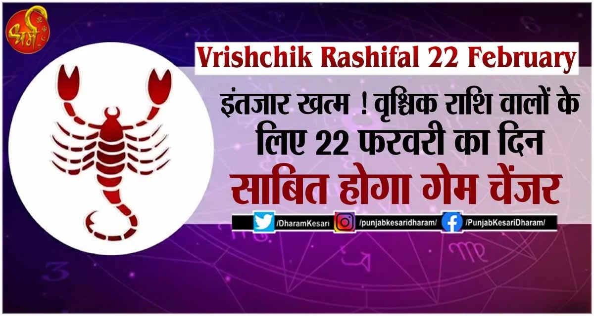 Vrishchik Rashifal 22 February : इंतजार खत्म ! वृश्चिक राशि वालों के लिए 22 फरवरी का दिन साबित होगा गेम चेंजर