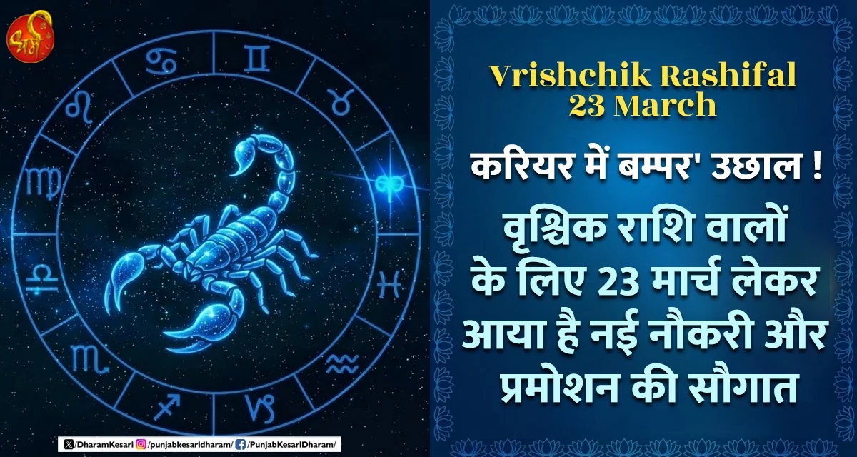 Vrishchik Rashifal 23 March : करियर में बम्पर' उछाल ! वृश्चिक राशि वालों के लिए 23 मार्च लेकर आया है नई नौकरी और प्रमोशन की सौगात