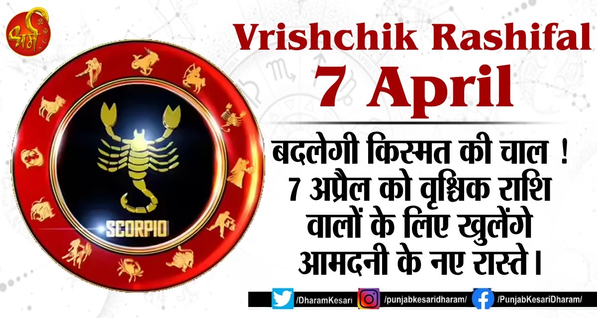 Vrishchik Rashifal 7 April : बदलेगी किस्मत की चाल ! 7 अप्रैल को वृश्चिक राशि वालों के लिए खुलेंगे आमदनी के नए रास्ते