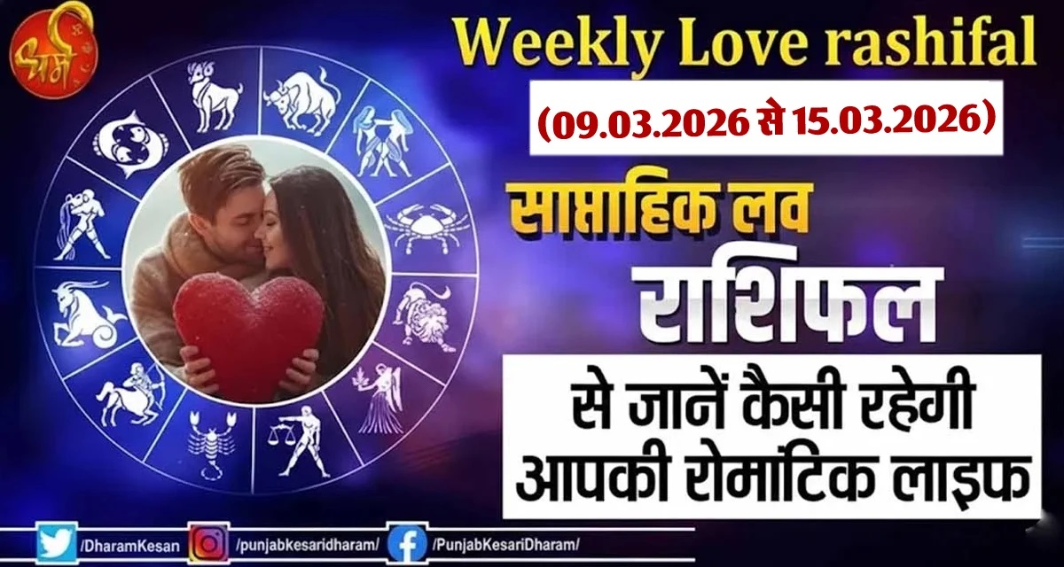 Weekly Love rashifal (09.03.2026 से 15.03.2026): हर नया सप्ताह रिश्तों में नई भावनाएँ, उम्मीदें और अनुभव लेकर आता है। 09 मार्च 2026 से 15 मार्च 2026 का यह सप्ताह प्रेम संबंधों के लिहाज से कई राशियों के लिए खास रहने वाला है। ग्रहों की चाल हमारे मन, भावनाओं और रिश्तों पर गहरा प्रभाव डालती है। इस सप्ताह कुछ राशियों के जीवन में रोमांस बढ़ेगा, तो कुछ को अपने रिश्तों में धैर्य और समझदारी से काम लेना होगा। आइए जानते हैं सभी 12 राशियों के लिए इस सप्ताह आपकी लव लाइफ कैसी रहने वाली है।