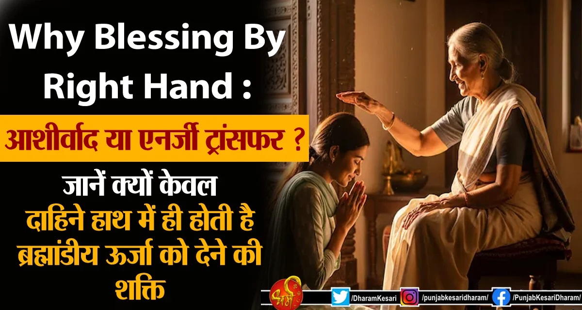 Why Blessing By Right Hand : भारतीय संस्कृति में बड़ों के चरण स्पर्श करना और बदले में उनके हाथ का सिर पर टिकना एक ऐसी प्रक्रिया है, जिसे हम बचपन से देखते आ रहे हैं। लेकिन क्या आपने कभी गौर किया है कि आशीर्वाद हमेशा दाहिने हाथ से ही क्यों दिया जाता है। अक्सर हम इसे केवल एक शिष्टाचार या सीधे हाथ को शुभ मानने की परंपरा मान लेते हैं, परंतु प्राचीन भारतीय ऋषियों और योग विज्ञान के अनुसार इसके पीछे एक अत्यंत गहरा वैज्ञानिक और आध्यात्मिक कारण छिपा है। दरअसल, हमारा शरीर ऊर्जा का एक अद्भुत पावरहाउस है। योग शास्त्र की मानें तो हमारे शरीर का दाहिना हिस्सा सूर्य ऊर्जा से संचालित होता है, जो तेज, शक्ति और सकारात्मकता का केंद्र है। जब कोई सिद्ध पुरुष या घर के बुजुर्ग अपना दाहिना हाथ आपके सिर पर रखते हैं, तो वह केवल एक स्पर्श नहीं होता, बल्कि उनके भीतर संचित सकारात्मक तरंगों का आपके शरीर में एनर्जी ट्रांसफर होता है। तो आइए जानते हैं कि दाहिने हाथ से आशीर्वाद देने के पीछे की वैज्ञानिक और आध्यात्मिक कारण के बारे में-