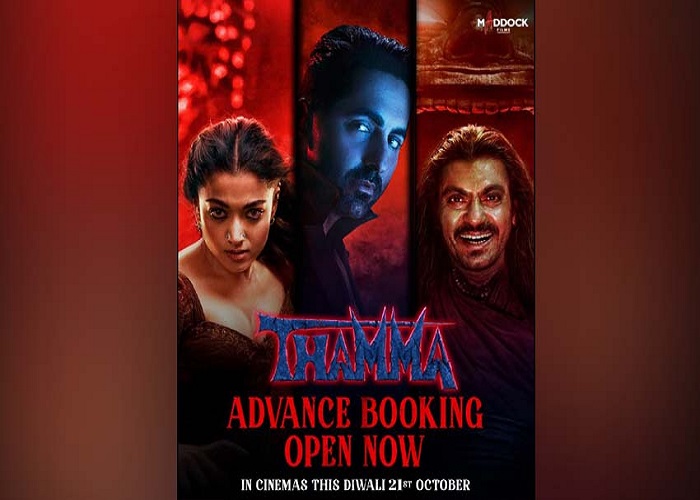 नई दिल्ली/टीम डिजिटल। दिनेश विजान की मैडॉक फिल्म्स की आने वाली हॉरर-कॉमेडी फिल्म ‘Thamma’ ने एडवांस बुकिंग के साथ ही धमाकेदार शुरुआत कर दी है। सुबह से खुले एडवांस बुकिंग स्लॉट्स में टिकट्स तेजी से बिक रहे हैं और बड़े शहरों में शो लगभग फुल हो रहे हैं।