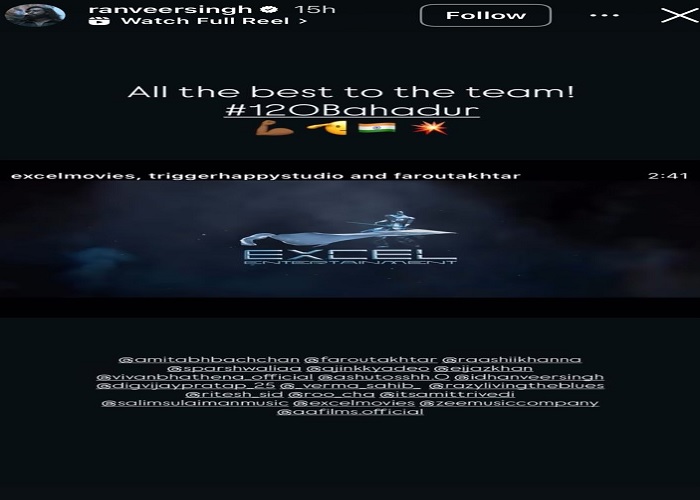 रणवीर सिंह से लेकर सनी देओल तक, सेलेब्स ने की 120 बहादुर के ट्रेलर की खूब तारीफ