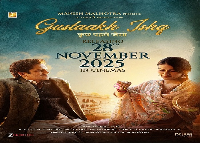 निर्माता मनीष मल्होत्रा और उनके भाई दिनेश मल्होत्रा के साथ यह मनीष का बतौर प्रोड्यूसर पहला प्रोजेक्ट है जिसमें उन्होंने अपने सिनेमा, डिज़ाइन और जज़्बात के प्रेम को एक साथ पिरोया है। नसीरुद्दीन शाह जहां एक soulful शायर बने हैं, वहीं विजय वर्मा एक ऐसे शख़्स की भूमिका में हैं जो मोहब्बत और शायरी की ज़बान सीख रहा है। इन दोनों के बीच मिनी की कहानी उनके अल्फ़ाज़ों और खामोशियों के बीच धीरे-धीरे खुलती है। गुस्ताख इश्क हमें याद दिलाता है कि पुराना, सच्चा इश्क़ आज भी बड़े परदे पर अपनी जगह रखता है- और शायद यही उसकी सबसे बड़ी खूबसूरती है। फिल्म 28 नवंबर को सिनेमाघरों में रिलीज़ होगी।