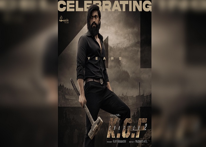 इस पोस्ट को शेयर करते हुए मेकर्स ने लिखा, "#KGFChapter2 के शानदार 4 साल का जश्न 🔥💥"