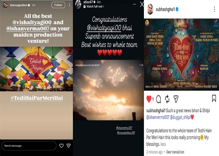 इसी कड़ी में बॉलीवुड के दिग्गज फिल्ममेकर और शोमैन सुभाष घई ने भी फिल्म को अपना आशीर्वाद दिया। उन्होंने इंस्टाग्राम पर पोस्ट साझा करते हुए लिखा, “टेढ़ी है पर मेरी है की पूरी टीम को बधाई। यह वाकई बहुत प्रॉमिसिंग लग रही है। मेरी शुभकामनाएं।” घई का यह समर्थन दर्शाता है कि फिल्म ने शुरुआत से ही सीनियर फिल्ममेकर्स का ध्यान खींच लिया है।