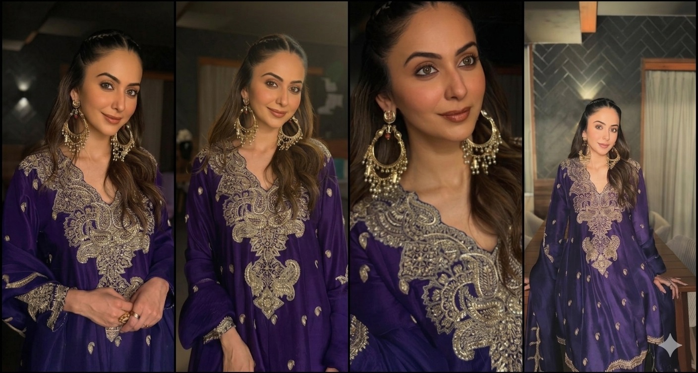 Mumbai : Bollywood की जानी-मानी अभिनेत्रियों में एक रकुलप्रीत सिंह नई-नई अदाओं से अपने फैंस को मोहित करती रहती हैं। इस बार की recent फोटोज में रकुलप्रीत सिंह पूरे पंजाबी लुक में नज़र आई हैं। इनकी ये खूबसूरती को देखकर हर कोई मंत्रमुग्ध हो गया है। इन फोटोज में राकुलप्रीत ने पर्पल कलर का शरारा सूट पहना है।