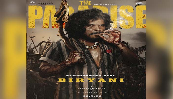 सोशल मीडिया पर द पैराडाइज़ के मेकर्स ने सम्पूर्णेश बाबू के किरदार ‘बिरयानी’ का कैरेक्टर पोस्टर शेयर किया। पोस्टर में उनका लुक वाकई डराने वाला है और नाम भी उतना ही चौंकाने वाला। आमतौर पर कॉमेडी रोल्स के लिए पहचाने जाने वाले सम्पूर्णेश बाबू का यह बिल्कुल नया और गंभीर अवतार देखकर सभी हैरान रह गए हैं। फिल्म तेलुगु, हिंदी, तमिल, कन्नड़, मलयालम, बंगाली, अंग्रेज़ी और स्पेनिश में रिलीज़ होगी।
