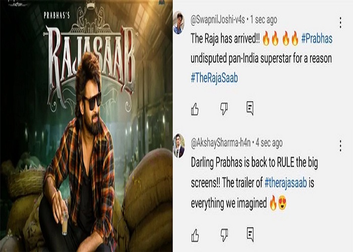 फैंस का कहना है कि यह सिर्फ एक ट्रेलर नहीं बल्कि एक त्योहार है। एक यूज़र ने लिखा, “क्या ट्रेलर है!!! प्रभास का स्वैग बेमिसाल है, विज़ुअल्स शानदार हैं, म्यूज़िक जबरदस्त है। राजा साहब का दौर शुरू हो गया ।” वहीं दूसरे ने कहा, “ये सिर्फ ट्रेलर नहीं है, ये हमारे लिए एक त्योहार है! किंग आ चुका है #Prabhas #TheRajaSaab।”