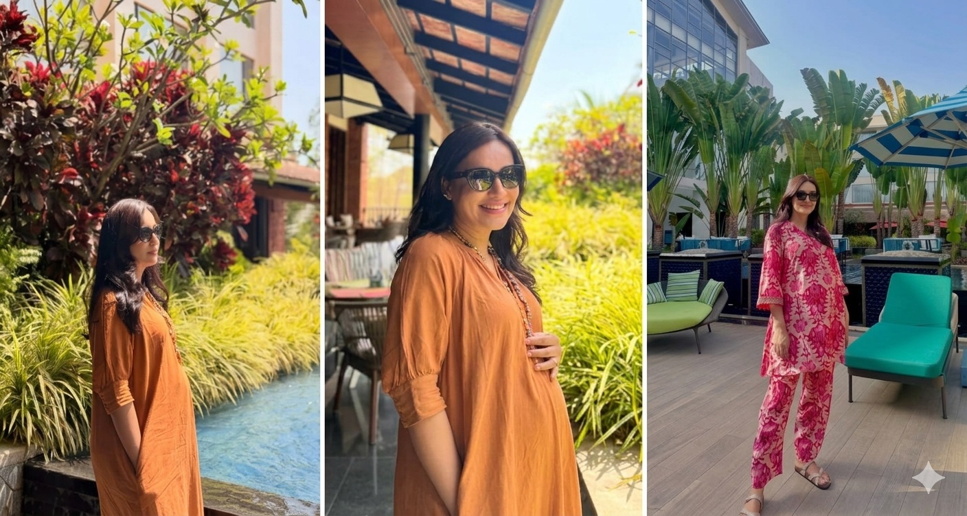 एक्ट्रेस ने पिंक प्रिंटेड को-ऑर्ड सेट में अपनी कई तस्वीरें शेयर की हैं। कहीं वह पूल और हरियाली के बीच सुकून से बैठी हैं, तो कहीं उनकी मुस्कुराहट उनके प्रेग्नेंसी ग्लो को और बढ़ा रही है।