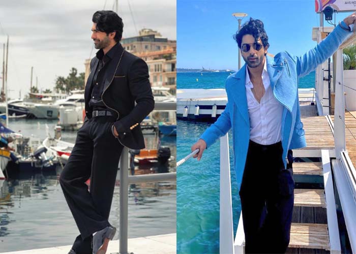 बरगंडी पिनस्ट्राइप सूट ताहा की स्टाइल के अधिक स्ट्रक्चर्ड और पावरफुल साइड को दिखाता है। व्हाइट शर्ट और कलर्ड टाई इसे क्लासिक रखते हैं, जबकि घड़ी और मेटल ब्रेसलेट जैसे छोटे ऐक्सेसरीज़ उनके पर्सनल टच को दर्शाते हैं। चलते हुए उनकी पॉकेट में एक हाथ डालने की स्टाइल इस लुक को स्वाभाविक रूप से कॉन्फिडेंट बनाती है, और कांस जैसा बैकग्राउंड इसे और भी प्रीमियम फील देता है।