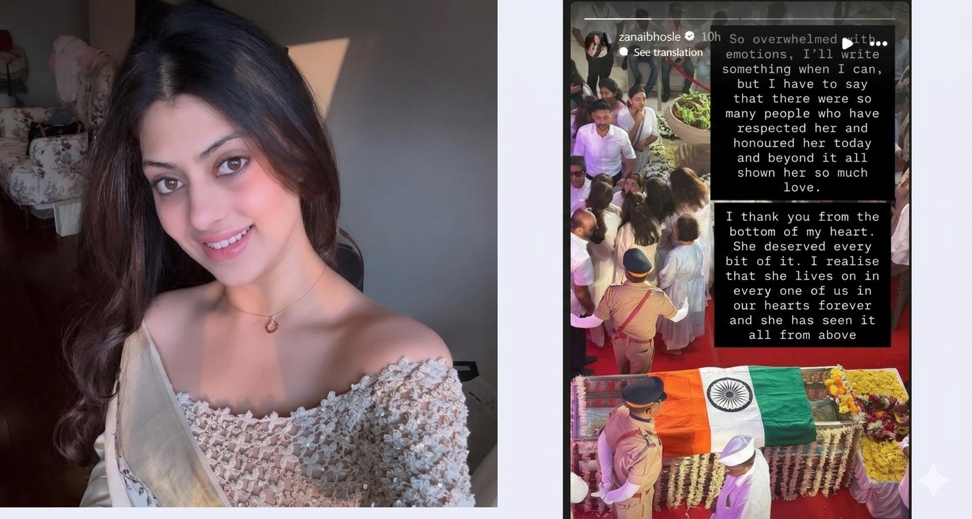अपनी इंस्टाग्राम स्टोरी में जनाई ने लिखा कि भावनाएं इतनी गहरी हैं कि उन्हें शब्दों में बयां करना मुश्किल है। उन्होंने कहा कि जब भी खुद को संभाल पाएंगी, तब विस्तार से अपने दिल की बात लिखेंगी। साथ ही उन्होंने यह भी माना कि उनकी दादी को जो सम्मान और प्यार मिला, वह उसकी पूरी तरह हकदार थीं और वे हमेशा लोगों के दिलों में जिंदा रहेंगी।