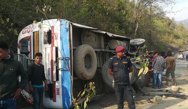 काठमांडूः मध्य नेपाल में क्षमता से ज्यादा यात्रियों को ले कर जा रही बस एक पहाड़ी से नीचे गिर गई, जिसमें कम से कम 14 लोगों की मौत हो गई और 106 लोग घायल हो गए। एक अधिकारी ने शनिवार को यह जानकारी दी। बस सिंधुपाल चौक से काठमांडू जा रही थी। यात्री दशैं का त्योहार मनाने के लिए गये हुए थे।