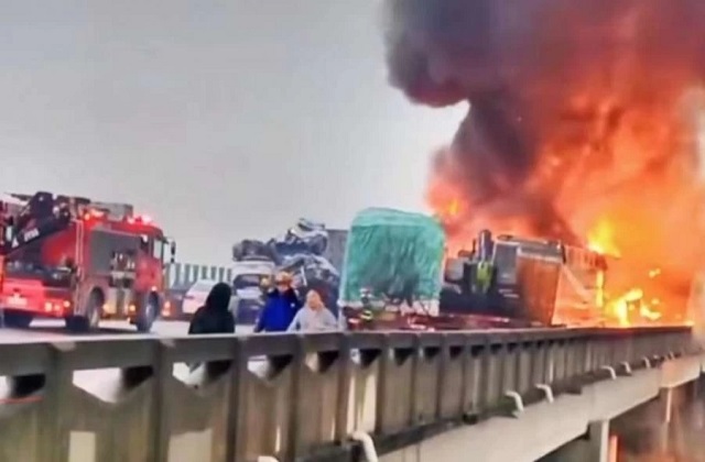 चीन के हाइवे पर 10 मिनट में 49 वाहन टकराने से लगी आग, 16 लोगों की मौत व दर्जनों घायल