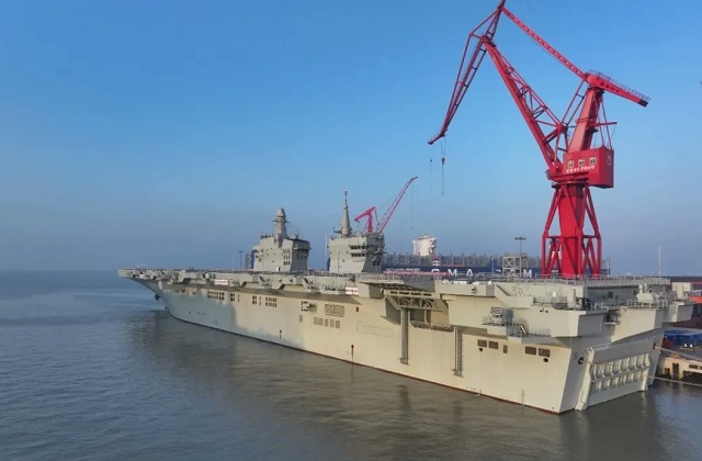 China's new assault ship SICHUAN 51 left Hudong-Zhonghua shipyard near Shanghai 14 Nov to begin sea trials. Roughly 50,000 tons, ship is at sea 25 months since assembly began, a truly remarkable achievement. Designed to operate unmanned aircraft, ship is the world's third to... pic.twitter.com/srfVKIEGqf