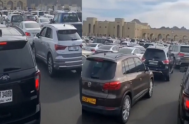 जंग का खौफः UAE छोड़कर ओमान भाग रहे लोग, Hatta बॉर्डर पर लगी गाड़ियों की लंबी कतारें ! (Video)