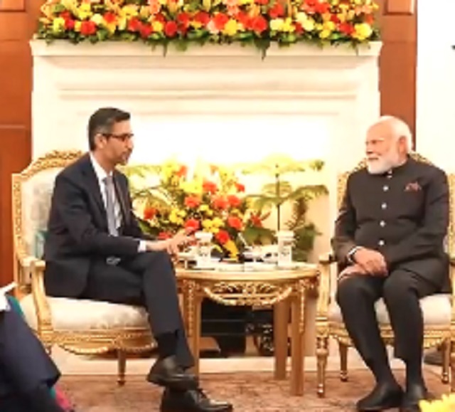 Video Credit: ANI@narendramodi @sundarpichai @GoI_MeitY #IndiaAI #AISummit2026… pic.twitter.com/mOm2Y9It4r