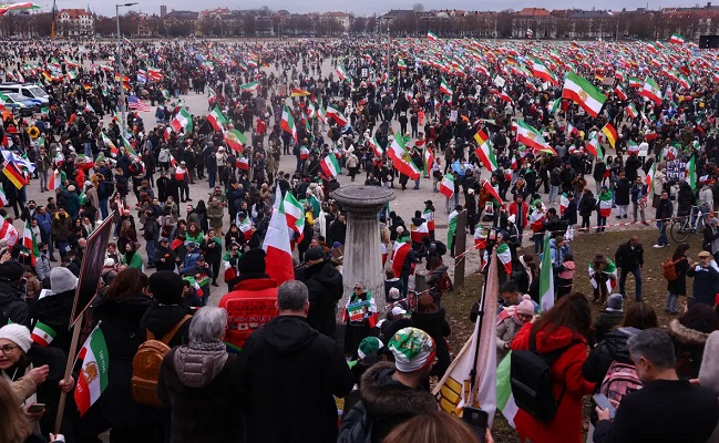 As exiled Crown Prince Reza Pahlavi addressed the Munich Security Conference, tens of thousands of Iranian opposition supporters rallied in Munich, calling for regime change and restoration of the monarchy.