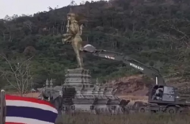 A Hindu deity’s statue was destroyed by Thailand’s army, placed by Cambodia.