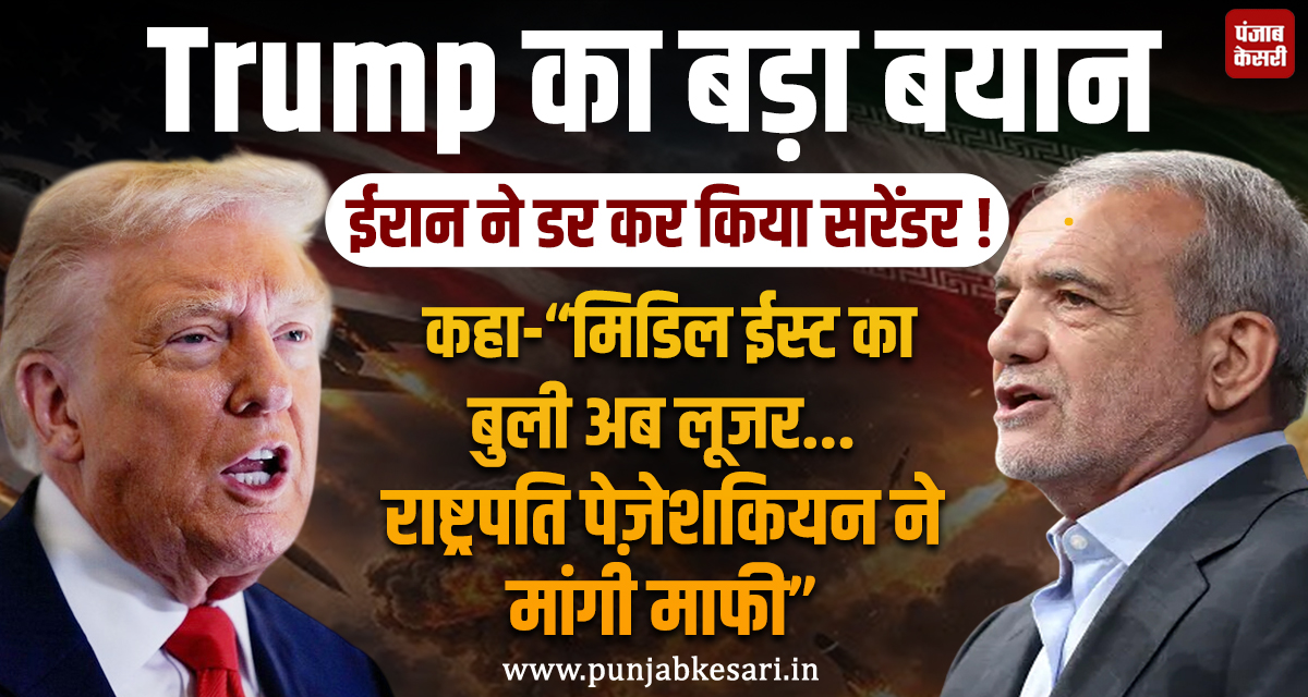 Trump का बड़ा बयान: ईरान ने डर कर किया सरेंडर ! कहा-"राष्ट्रपति पेज़ेशकियन ने मांगी माफी...“मिडिल ईस्ट का बुली अब लूज़र”