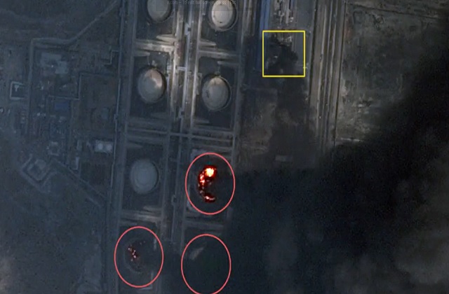 New high-resolution satellite imagery from Soar Atlas captures the aftermath of drone strikes at the Port of Fujairah, UAE, showing at least two storage tanks engulfed in flames with massive smoke plumes visible. pic.twitter.com/QryygVz5V9