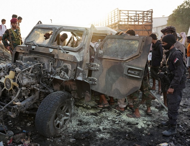 यमन में वरिष्ठ सैन्य कमांडर के काफिले पर आतंकी हमला, कार बम धमाके में 5 सैनिकों की मौैत(Video)