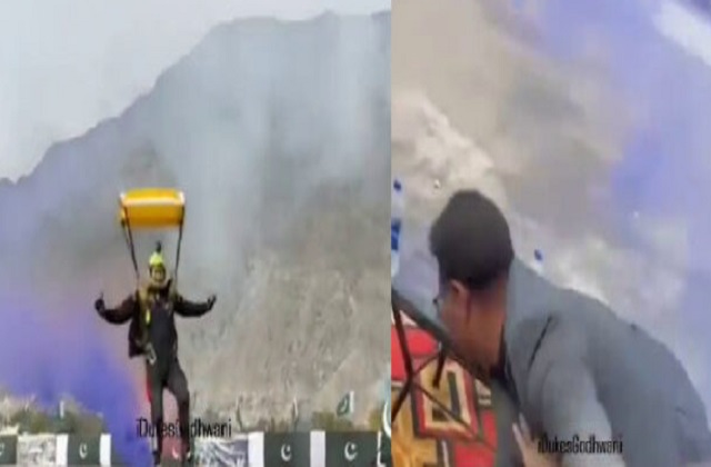 पाकिस्तानी सेना की जांबाजी ! पैरा जंपिंग लैंडिंग दौरान मेहमानों पर चढ़ गया कमांडो, VIDEO देख नहीं रोक पाएंगे हंसी